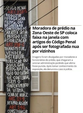 Moradora De Predio Coloca Faixa Na Janela Com Artigos Do Codigo Penal Depois De Ser Fotografada Nua Por Vizinhos Brasil Acontece