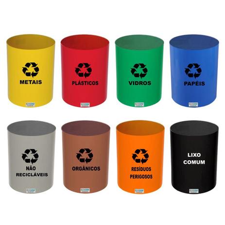 Kit Adesivos Coleta Seletiva Papel Vidro Plastico Metal Residuo Quimico E Lixo Organico
