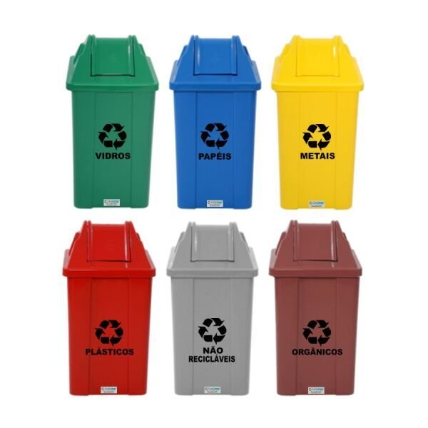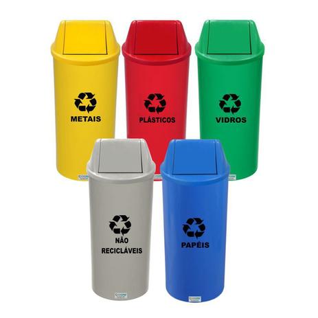 Coleta Seletiva De Lixo Reciclavel 50 Litros 5 Lixeiras Lixo Reciclavel Lixeira Reciclavel Lixeiras Reciclaveis