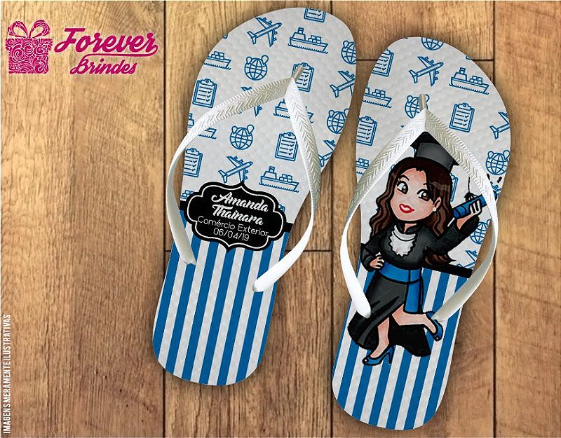 Chinelo Branco Caricatura De Comercio Exterior Forever Brindes