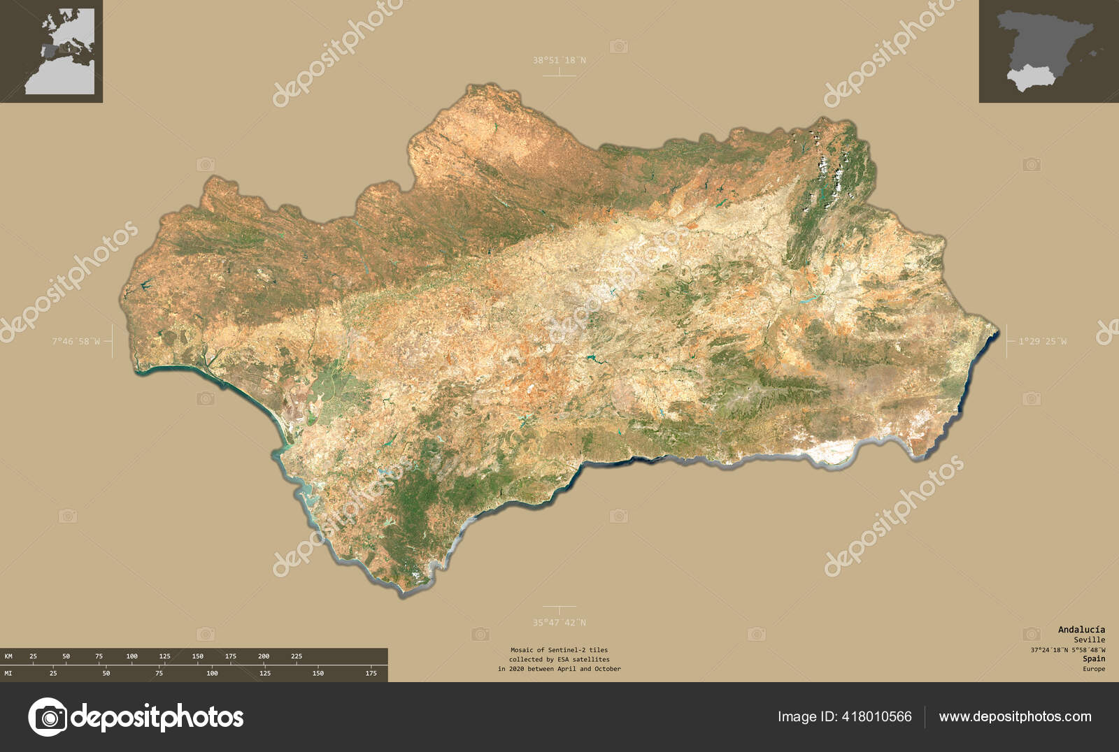 Andaluzia Comunidade Autonoma Espanha Imagens Satelite Sentinela Forma Isolada Fundo Stock Photo C Yarr65 418010566