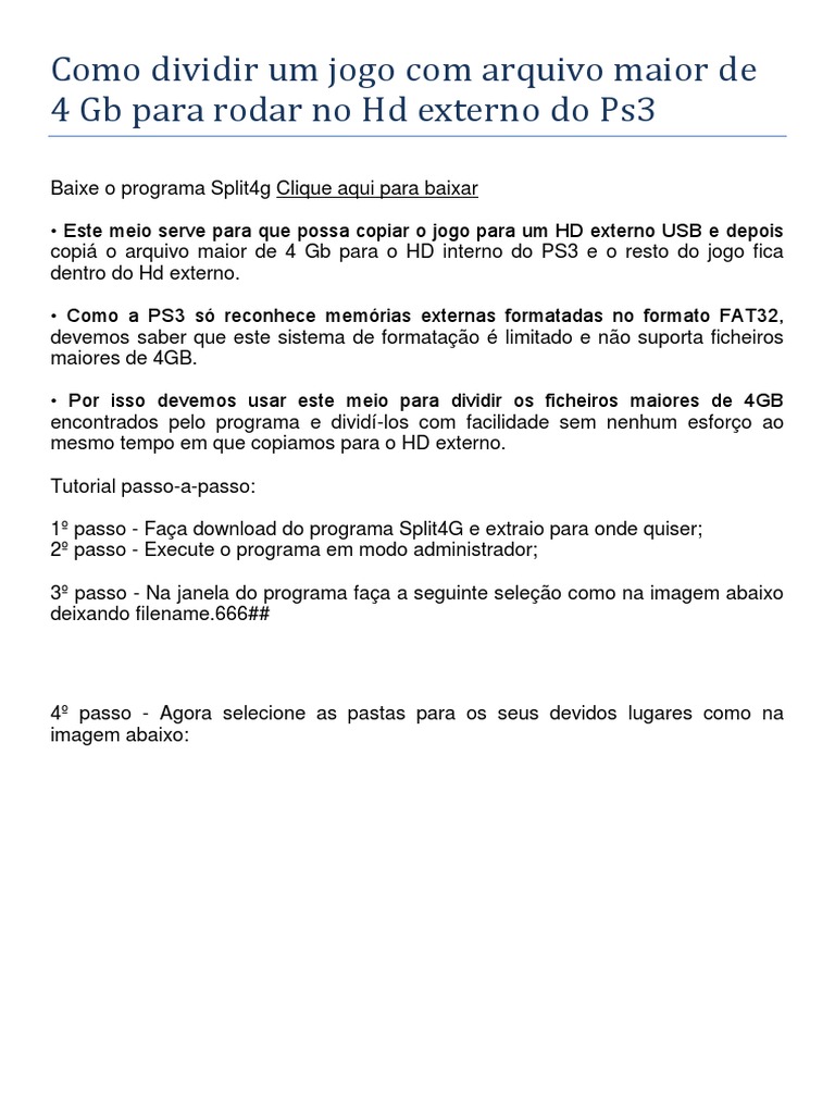 Como Dividir Um Jogo Com Arquivo Maior De 4 Gb Para Rodar No Hd Externo Do Ps3