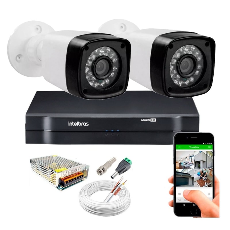 Kit Cftv 2 Cameras Hd 720p Infravermelho 20 Metros Dvr Intelbras Mhdx 1104 Acessorios Pandatem