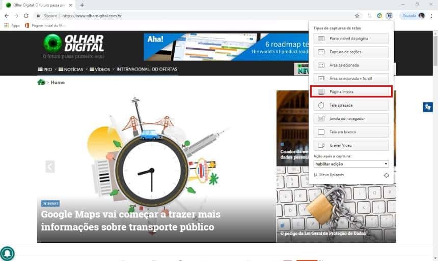 Como Capturar A Imagem De Uma Pagina Da Internet Inteira No Navegador Olhar Digital