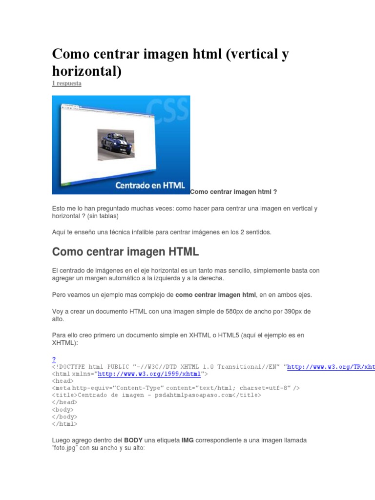 Como Centrar Imagen Html Html Xhtml