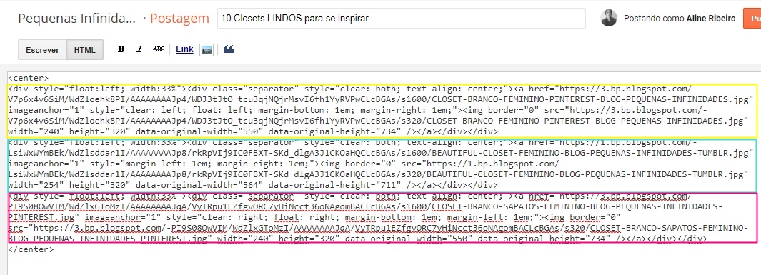 Blog Aline Ribeiro Como Alinhar Varias Imagens Lado A Lado No Post Do Blogger