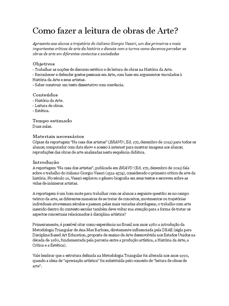 Como Ler Uma Obra De Arte Prette Arte E Literatura Obras De Arte Aulas De Artes Visuais