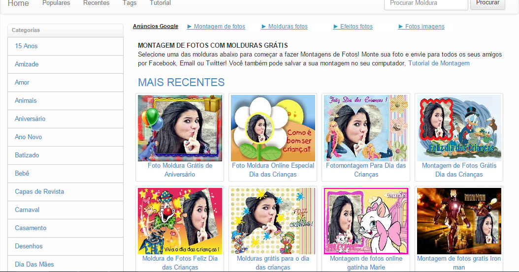 Pois é possível fazer montagens bem legais a partir de sites que oferecem esse serviço. Depois é só colocar papel de alta qualidade na impressora e clicar em imprimir ou então encomendar impressões profissionais que poderão ser entregues em sua casa. Ao clicar na guia layout à direita você poderá selecionar uma entre diversas opções de layouts para a montagem. Conte uma história com imagens clique no botão para fazer upload da foto ideal para cada grade.