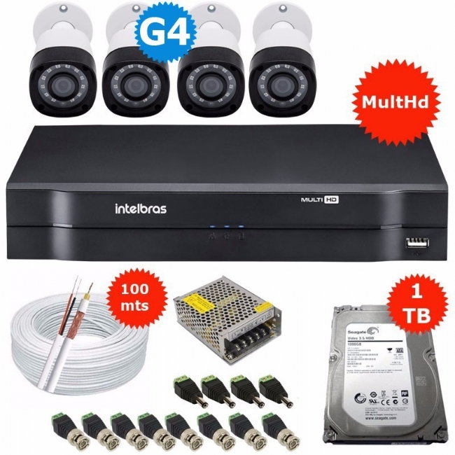 Kit Cftv Intelbras Com 4 Cameras Mult Hd Geracao 4 Dvr De 4 Canais Cabo De Alimentacao Conectores Bnc Fonte Chaveada 12v 5a Dos Informatica