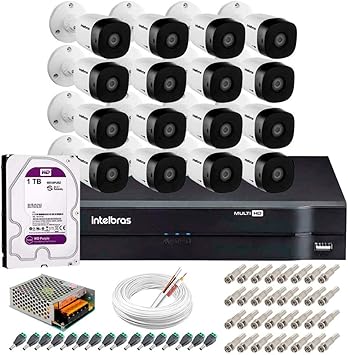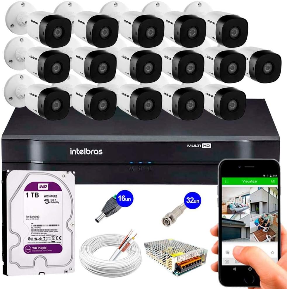 Kit 16 Cameras De Seguranca Infra Hd 720p Intelbras Vhl 1120b Dvr Intelbras Multi Hd Hd Wd Purple 1tb Acessorios Kabum