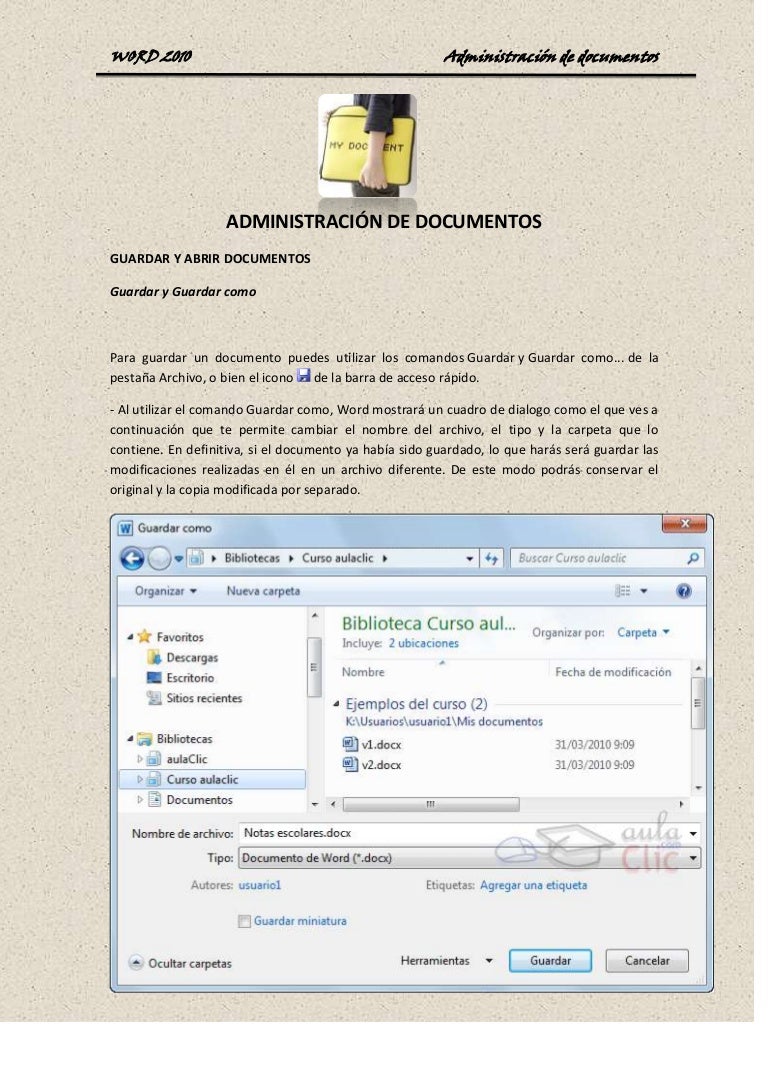 Curso Gratis De Word 2010 Aulaclic 4 Guardar Y Abrir Documentos