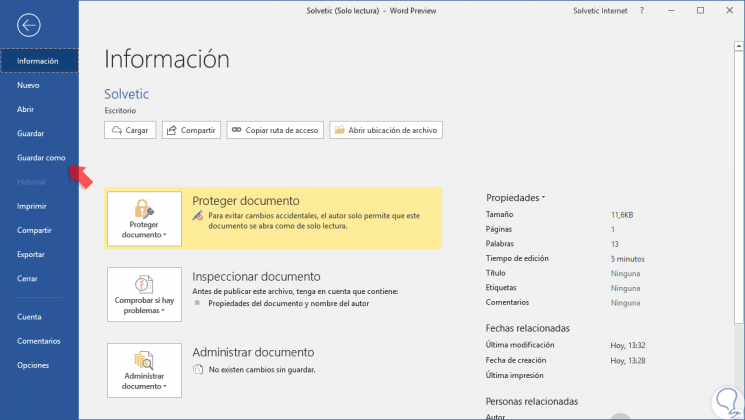 Como Guardar Archivo O Quitar Solo Lectura Word 2019 Word 2016 Solvetic