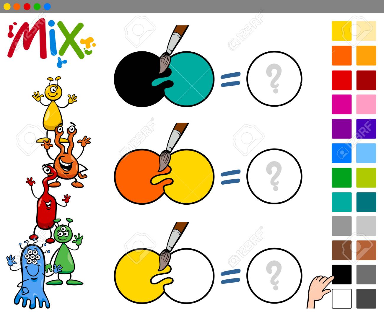 Ilustracion De Dibujos Animados De Mezclar Colores Juego De Actividades Educativas Para Ninos Ilustraciones Vectoriales Clip Art Vectorizado Libre De Derechos Image 77031432
