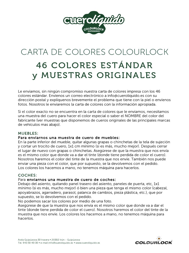 Carta Colores Cuero Colourlock Pdf Vehiculos De Ruedas Industria Automotriz