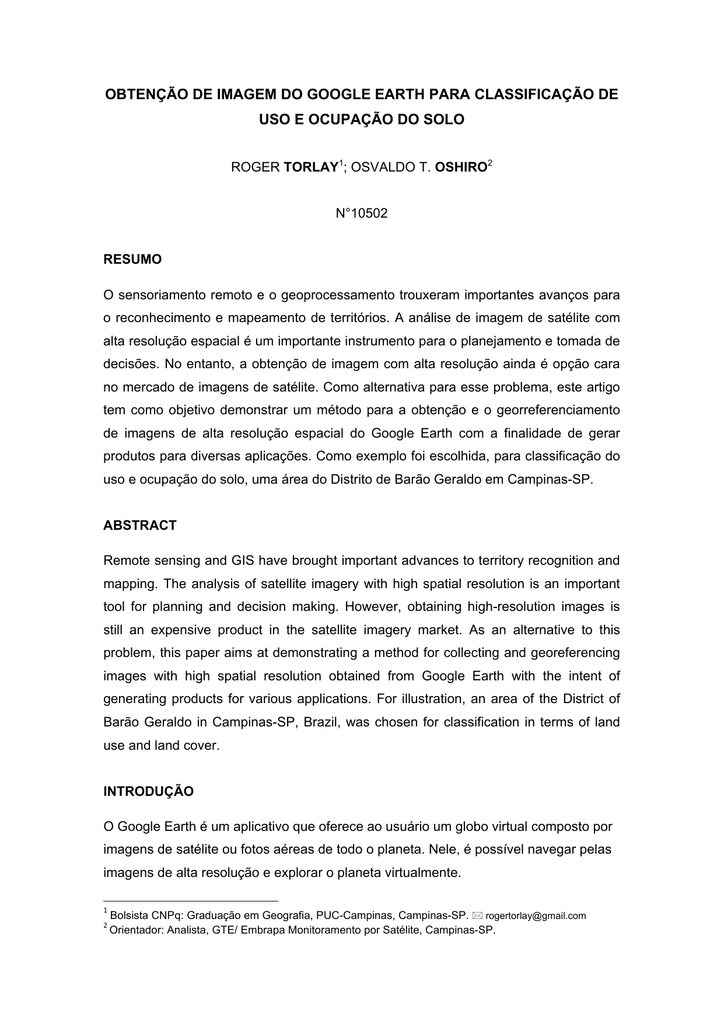 Obtencao De Imagem Do Google Earth Para Classificacao De Uso E Ocupacao Do Solo Pdf Free Download