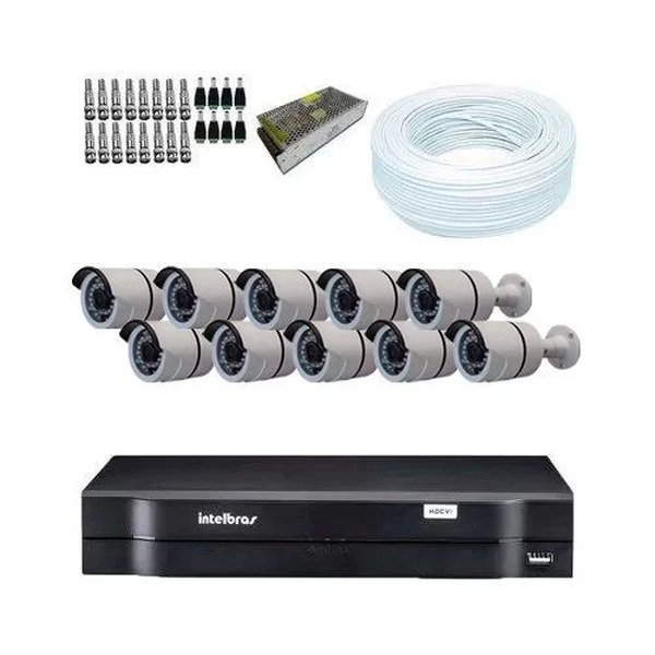 Kit Dvr Intelbras 10 Cameras Bullet Ahd 720p Acessorios Madeiramadeira
