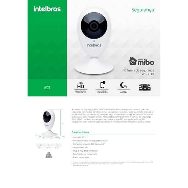 Camera De Seguranca Intelbras Wifi Mibo Ic3 Hd Sdcard 32gb P312392 Camera De Seguranca Intelbras Wifi Mibo Ic3 Hd Sdcard 32gb Na Estrela10