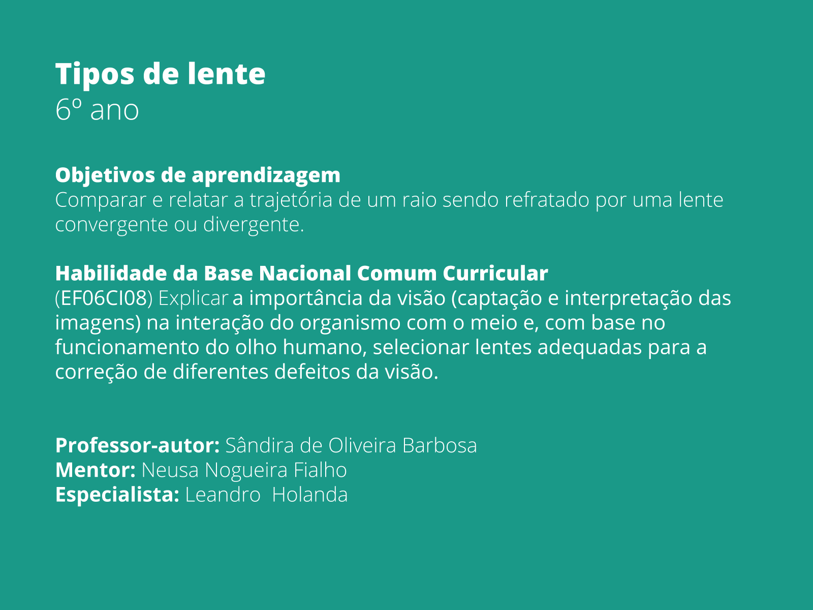 Plano De Aula 6º Ano Ciencias Tipos De Lente
