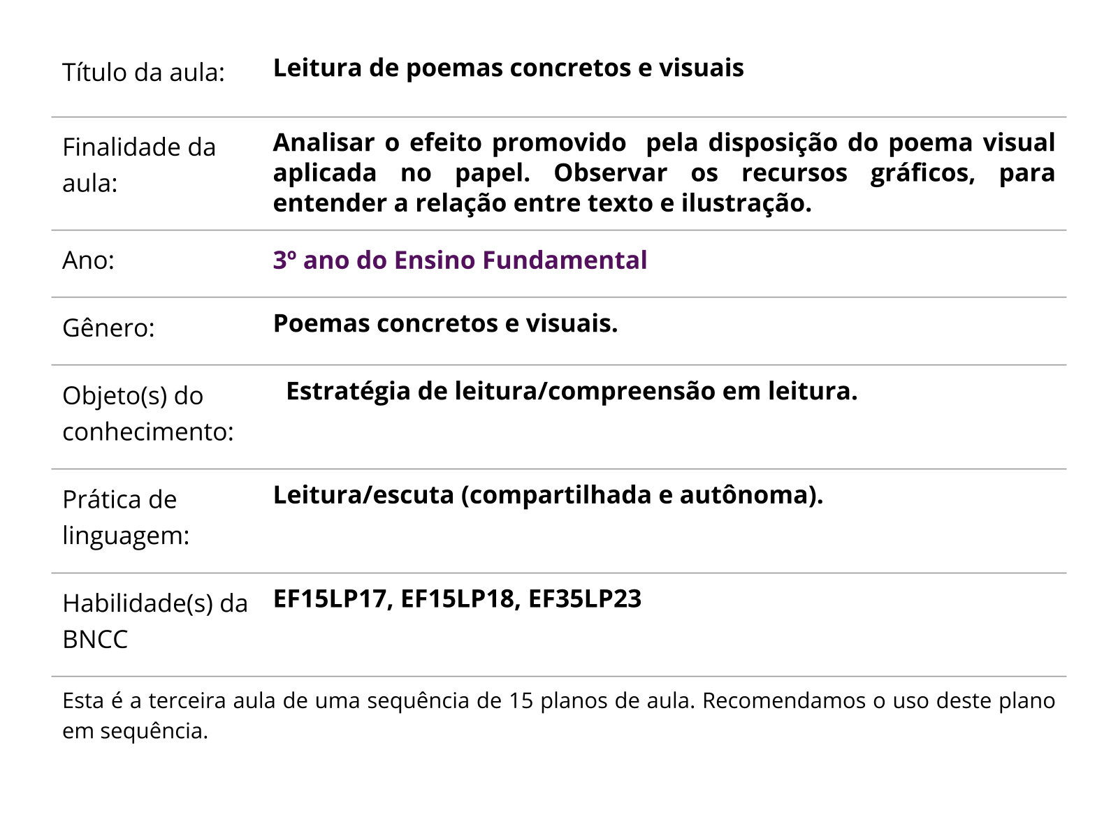 Plano De Aula 7º Ano Lingua Portuguesa Poema De Forma Fixa E Livre