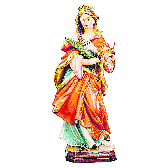 Imagem Santa Ursula Em Madeira Vestido Vermelho Ramo Verde Venda Online Na Holyart