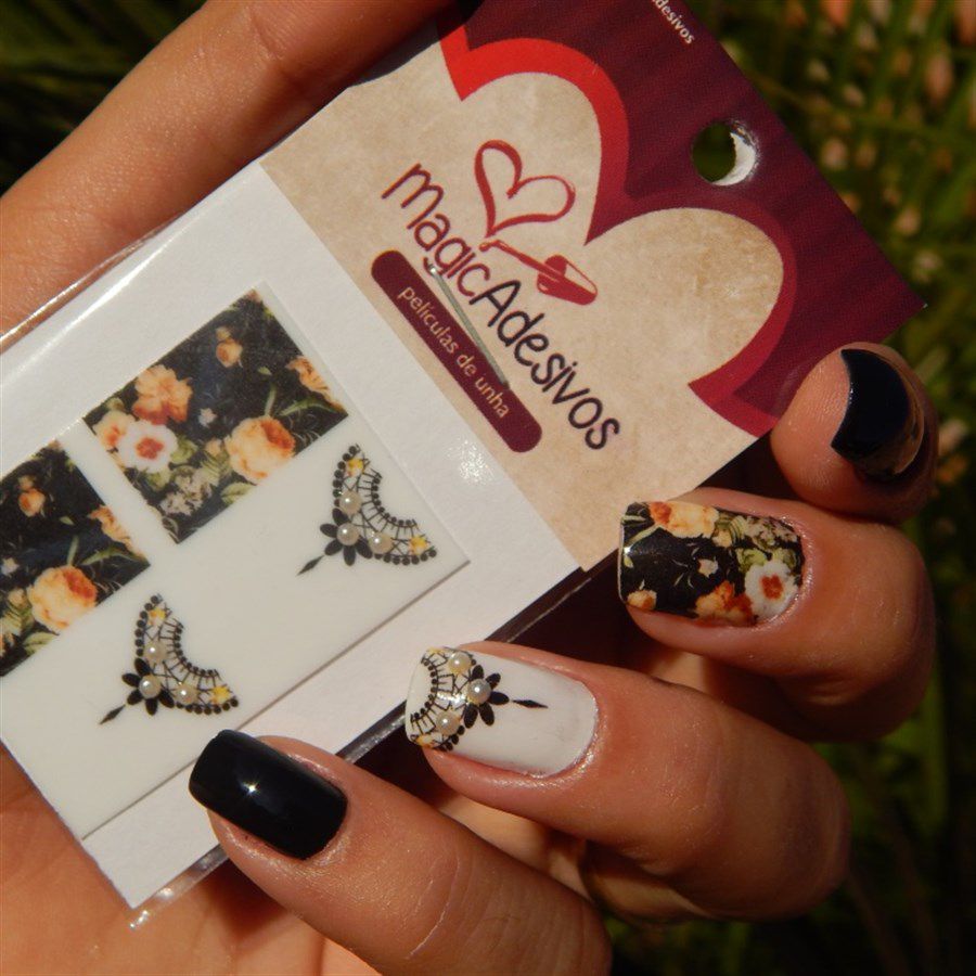 Adesivos De Unha Linha Glamour Floral Com Renda Gr07 Magicadesivos