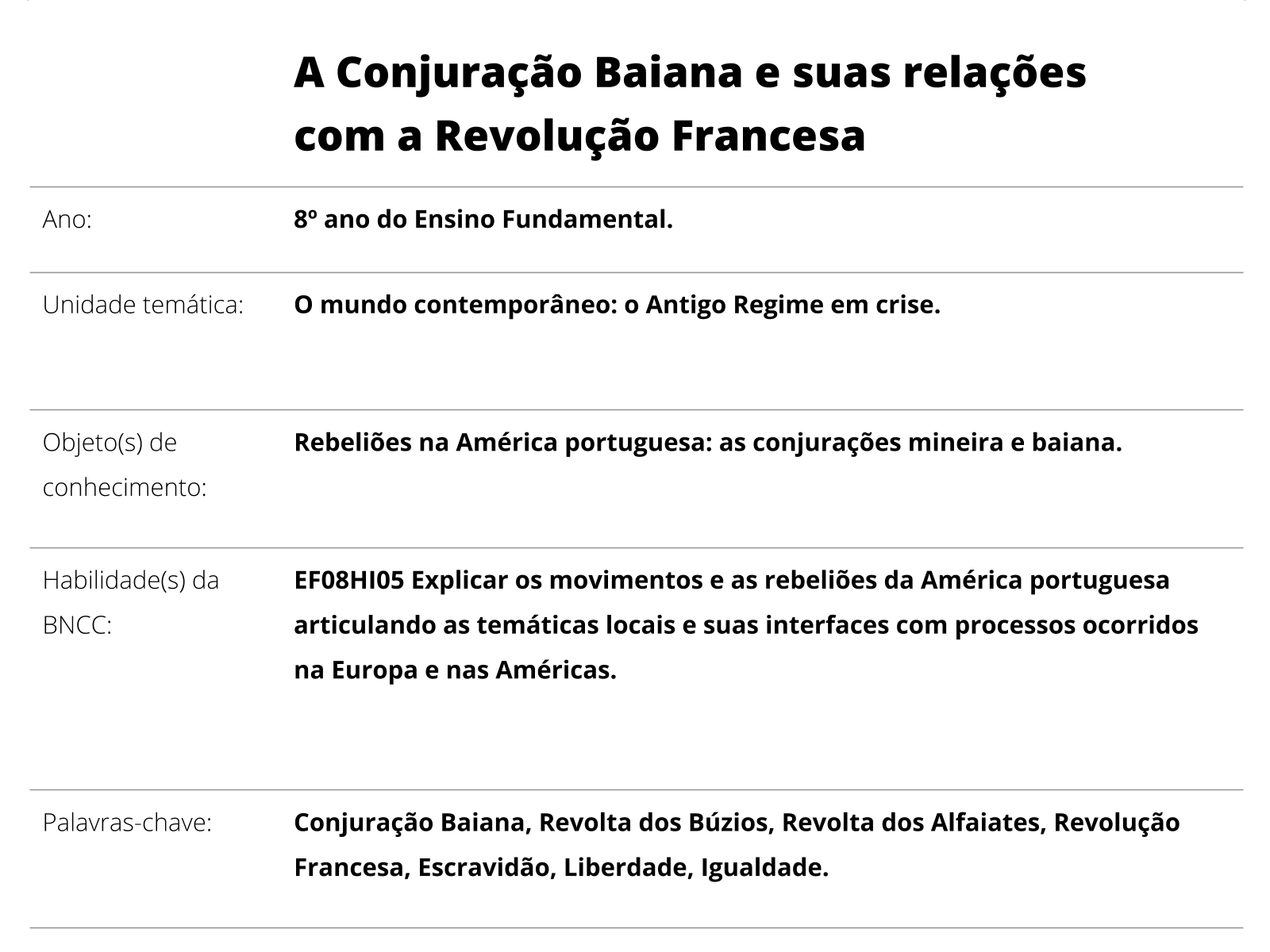 Plano De Aula 8º Ano Historia A Conjuracao Baiana E Suas Relacoes Com A Revolucao Francesa