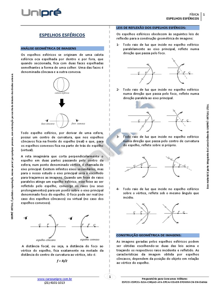 Fisica Pre Vestibular Impacto Optica Espelhos Esfericos I Fisica