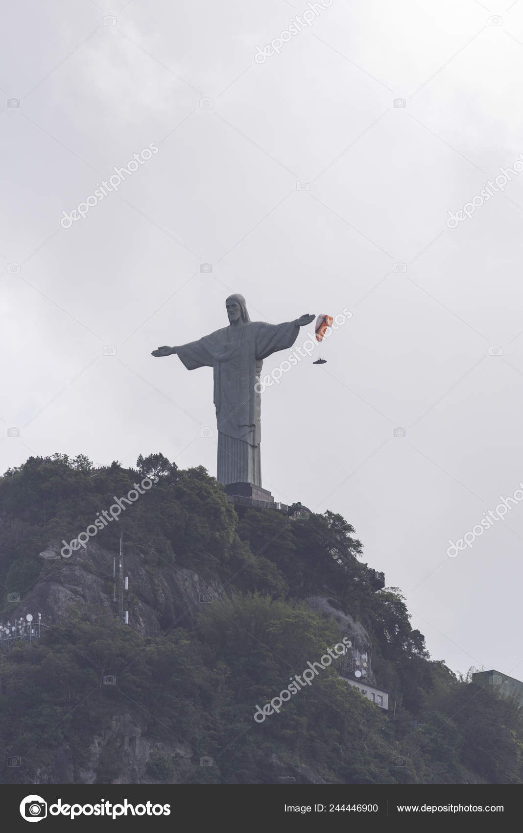 Parapente Sobre Estatua Cristo Redentor Topo Corcovado Morro Corcovado Rio Fotografia De Stock Editorial C Vitormarigo 244446900