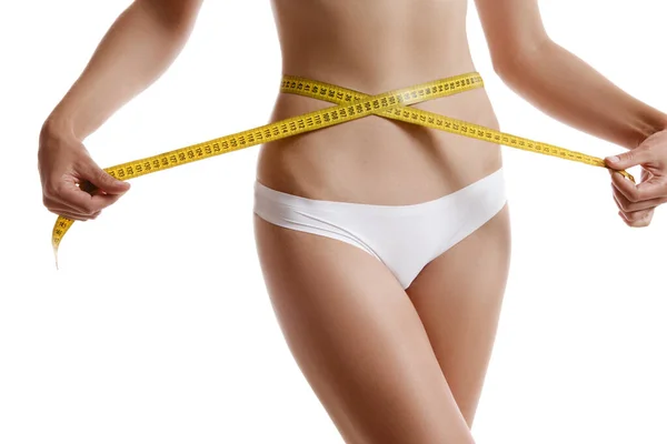 Mulher Magro Medindo Sua Cintura Em Fundo De Cor Espaco Para Texto Corpo Perfeito Fotos Imagens De C Liudmilachernetska Gmail Com 270472954