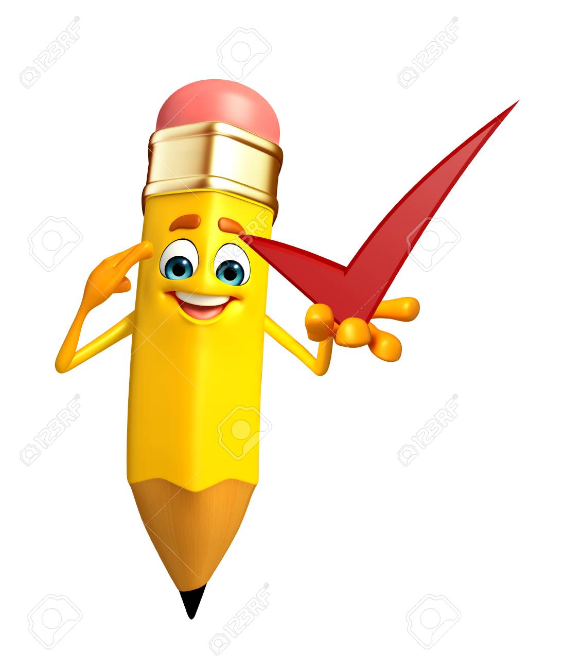 Personaje De Dibujos Animados De Lapiz Con El Signo Correcto Fotos Retratos Imagenes Y Fotografia De Archivo Libres De Derecho Image 31091588