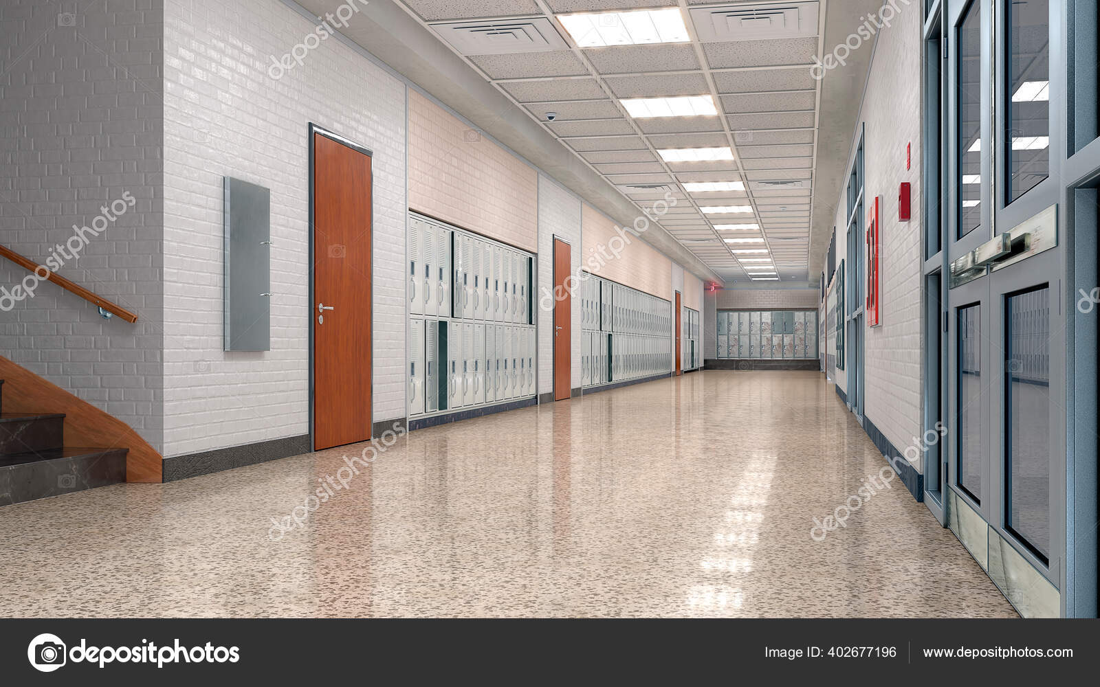 Vazio Escola Corredor Banco De Imagem K1623583 Fotosearch