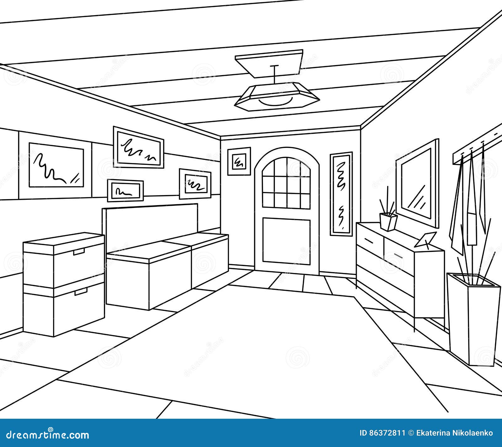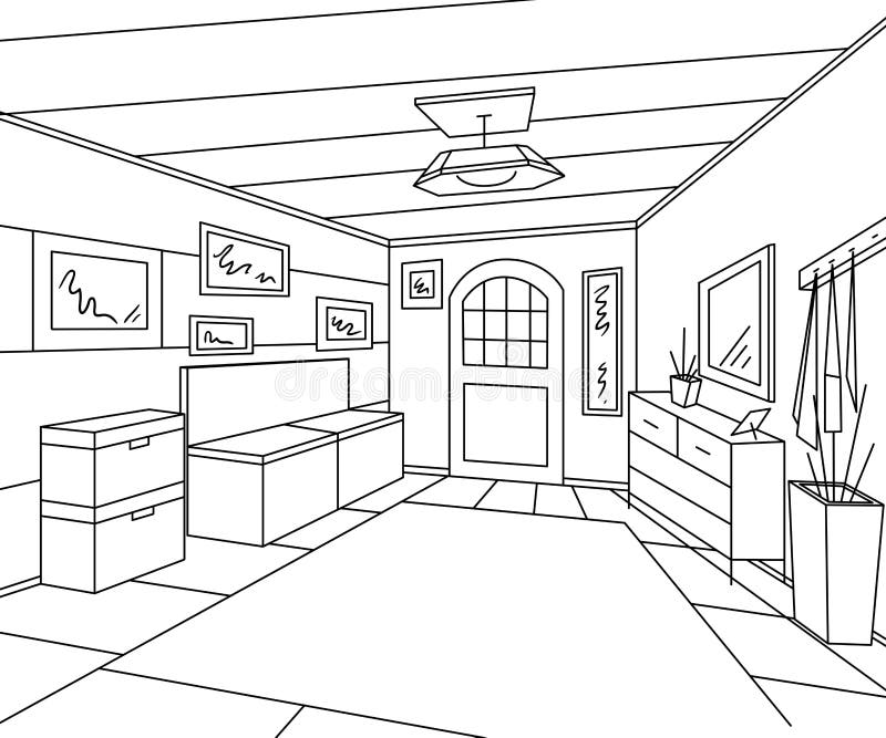 Extasie O Interior Do Corredor Com Mobilia Imagens E Banco Do Armazenamento Ilustracao Do Vetor Ilustracao De Corredor Interior 86372811