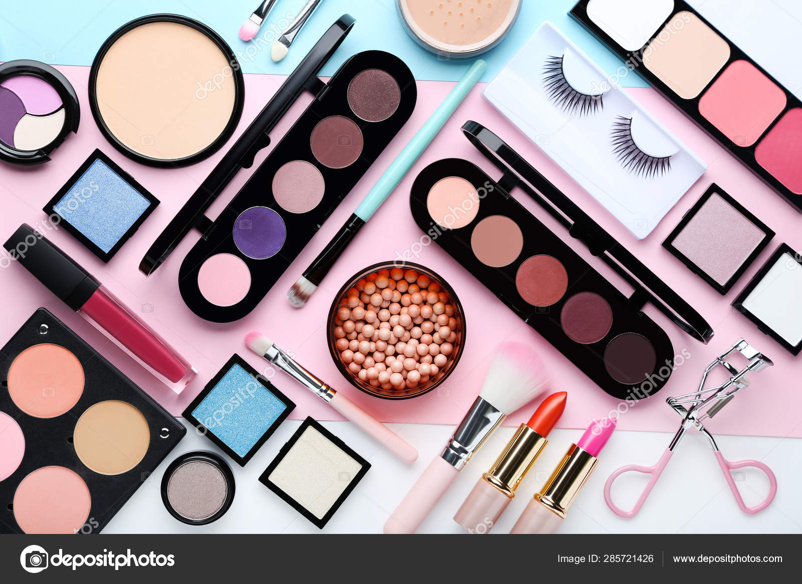 Cosmeticos De Maquiagem Em Fundo Colorido Fotos Imagens De C 5seconds 285721426