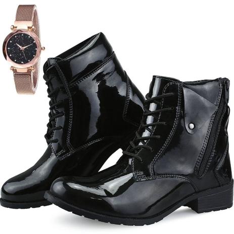 Coturno Feminino Neway Bota Cano Curto Inverno Envernizada Preta Relogio Bota Feminina Magazine Luiza