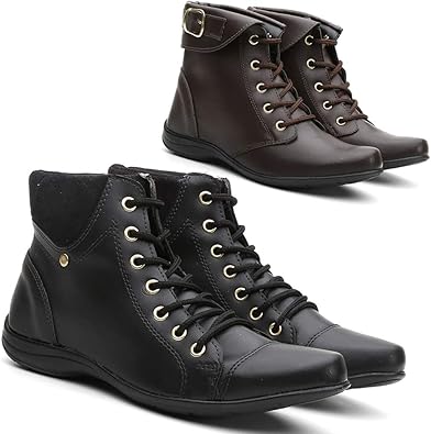 Kit 2 Pares Bota Feminina Cano Curto Coturno Dia A Dia Amazon Com Br