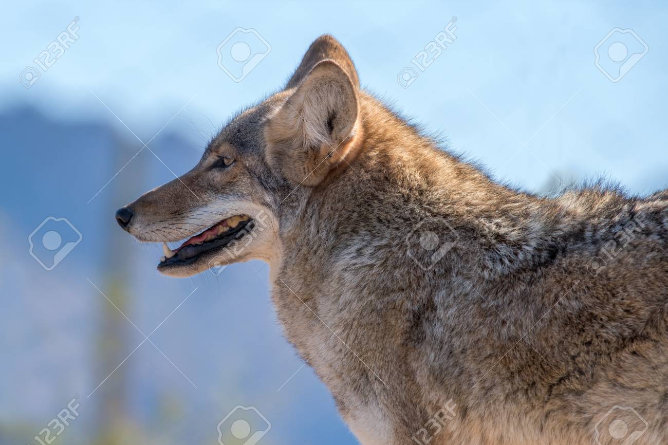 Portrait Of A Coyote Side View Or Profile Stock Photo Picture And Royalty Free Image Image 114868700