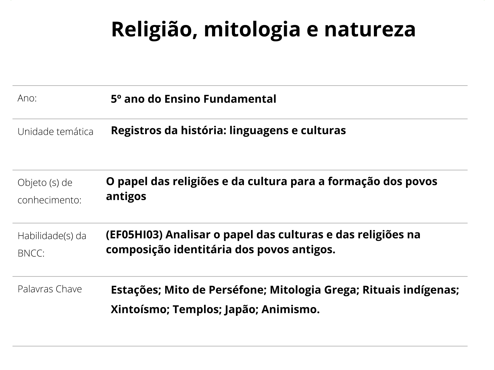 Plano De Aula 5º Ano Historia Religiao Mitologia E Natureza