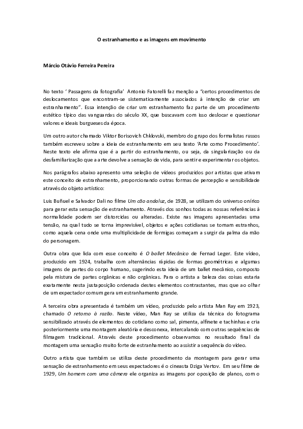 Doc O Estranhamento E As Imagens Em Movimento Marcio Pereira Academia Edu