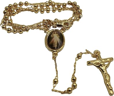 Amazon Com Cristo Misericordioso 18 K Chapado En Oro 18 Inch Rosario Misericordioso Cristo Rosario 18 Inch Jewelry