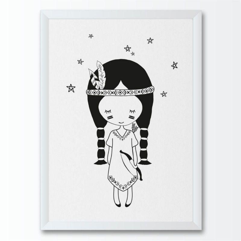 Quadro Menina Desenho Pequena Guerreira India P B Conspecto Quadro Decorativo Magazine Luiza