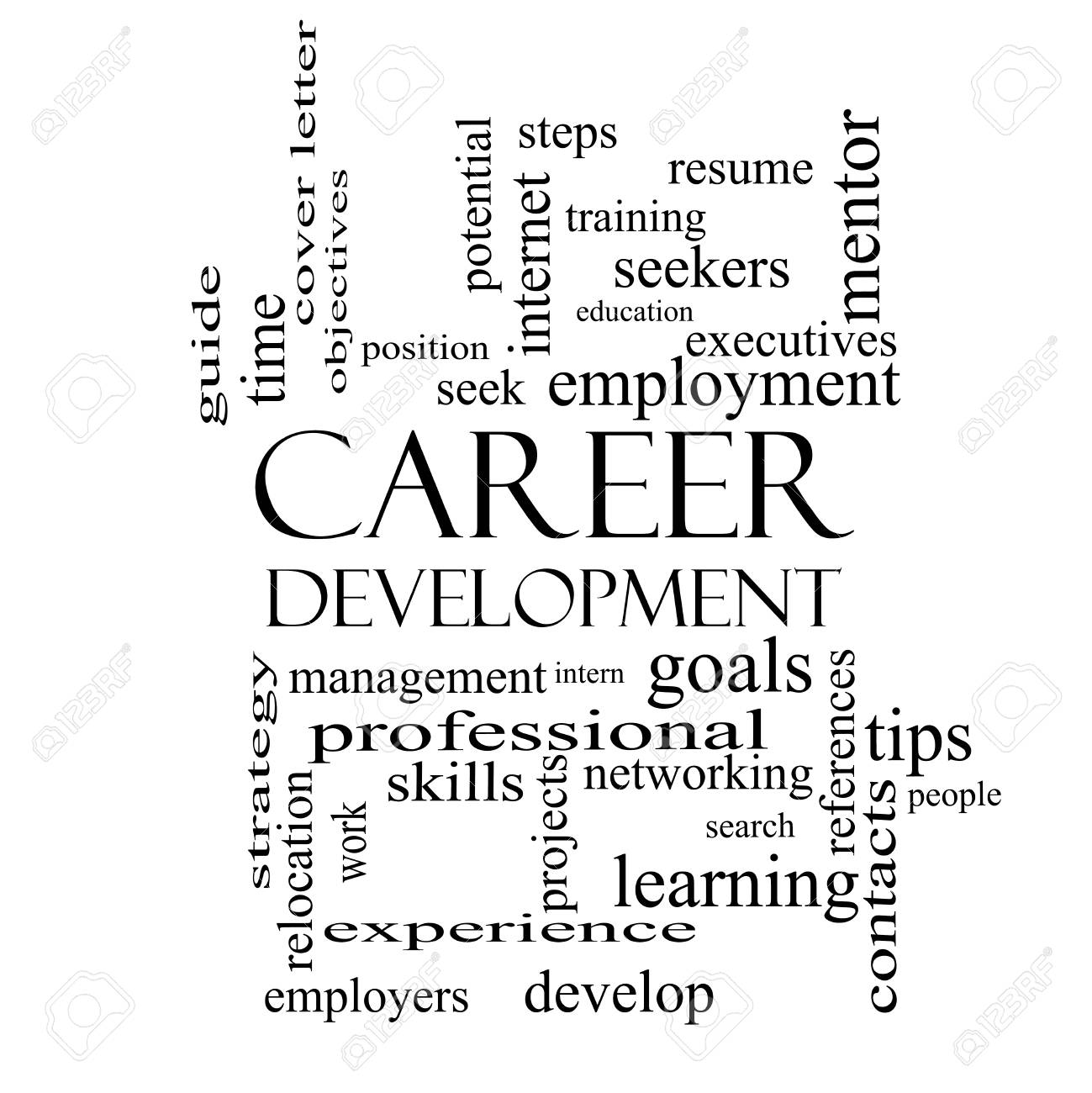 Desarrollo De Carrera Palabra Nube Concepto En Blanco Con Grandes Terminos Como Objetivos Curriculum Vitae El Mentor Y Mas Y Negro Fotos Retratos Imagenes Y Fotografia De Archivo Libres De Derecho Image