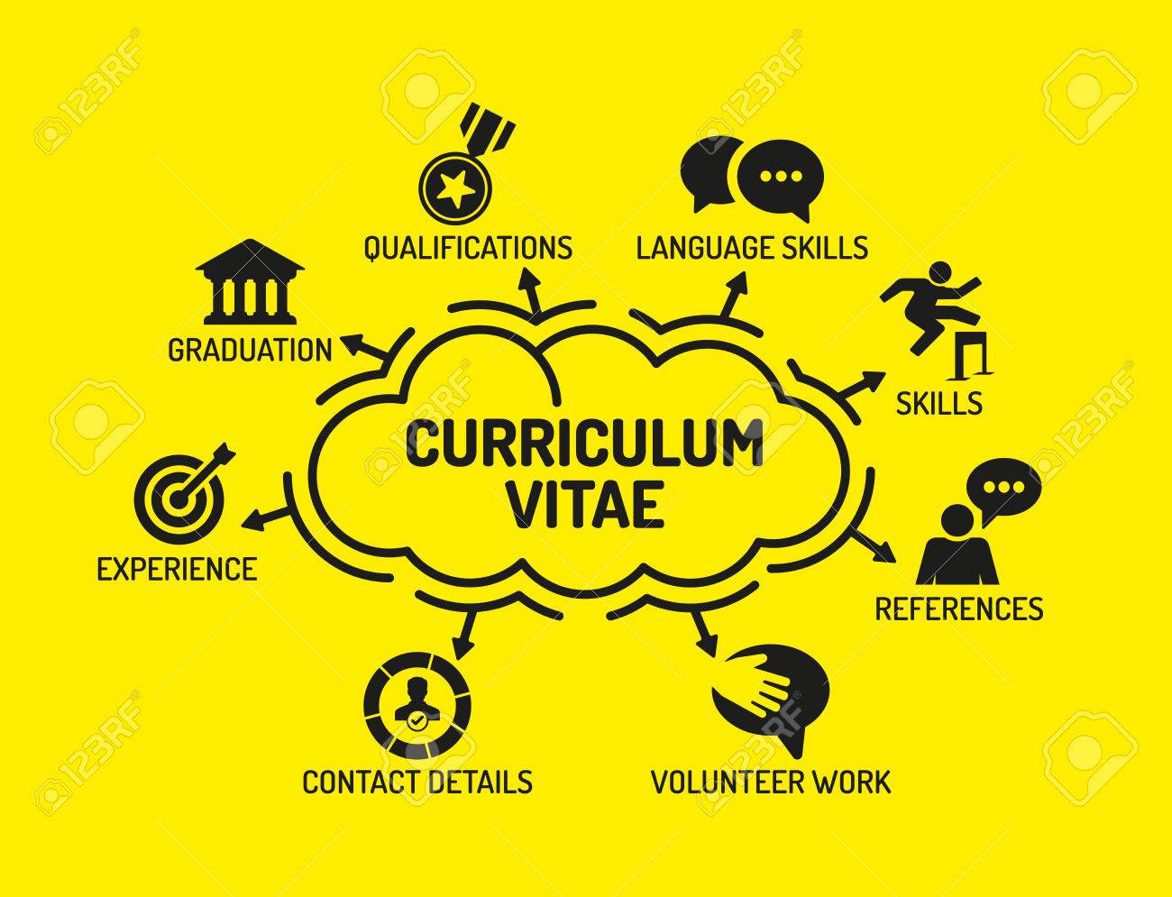 Curriculum Vitae Chart With Keywords And Icons On Yellow Background Royalty Free Cliparts Vectors And Stock Illustration Image 57637855
