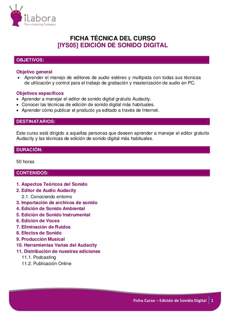 Curso Online Edicion De Sonido Digital