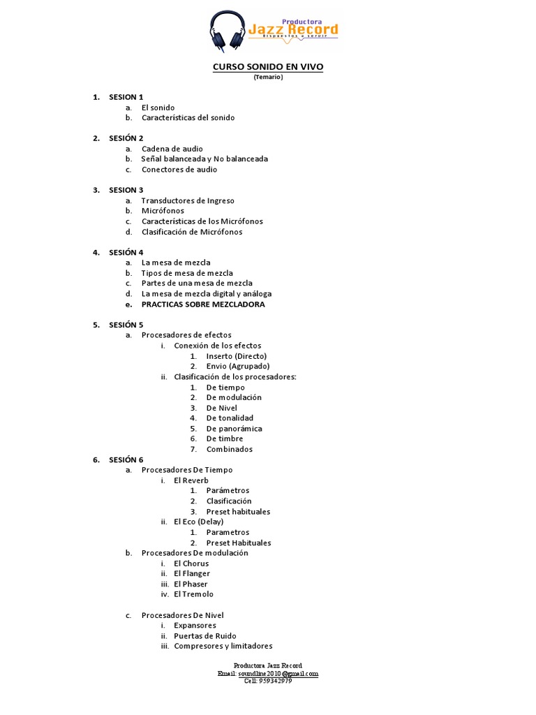 Temario Curso Sonido En Vivo Procesamiento De La Senal Tecnologia De Sonido