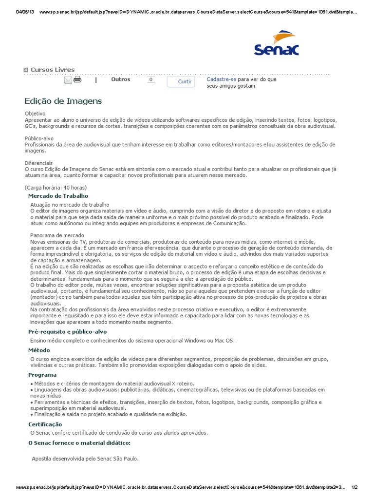 Curso Editor De Imgem Senac Video Computacao E Tecnologia Da Informacao
