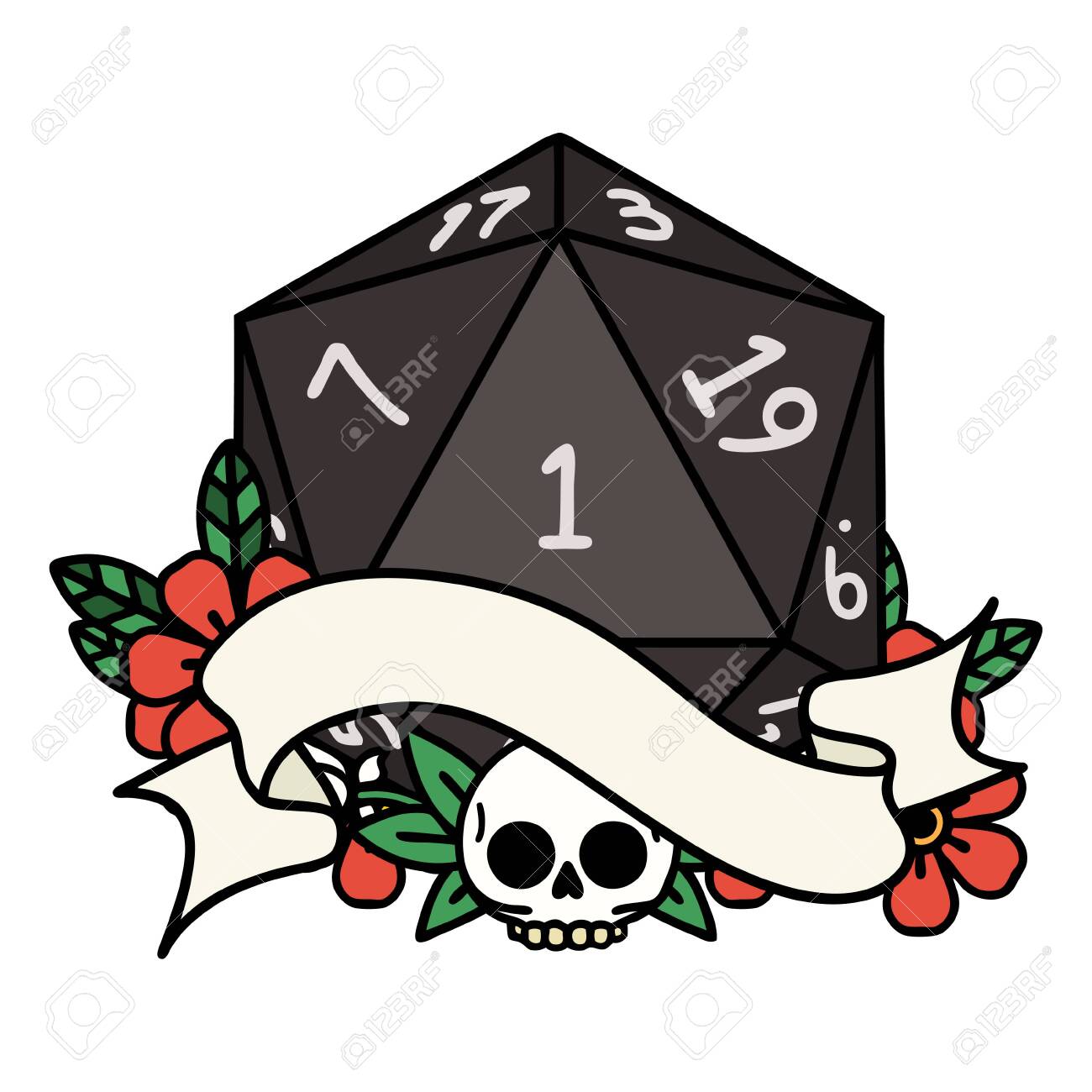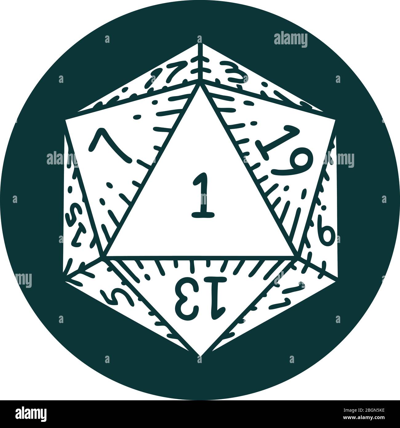 Retro Tattoo Style Natural One D20 Dice Roll Royalty Free Cliparts Vetores E Ilustracoes Stock Image 145917292