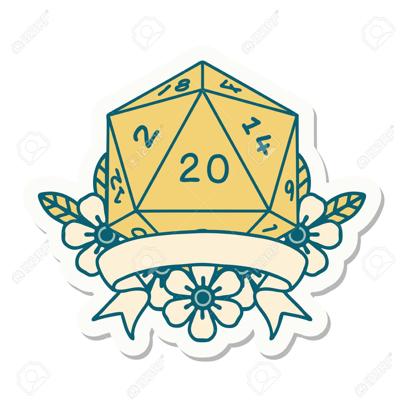 Sticker Of A Natural 20 Critical Hit D20 Dice Roll Royalty Free Cliparts Vetores E Ilustracoes Stock Image 146239610