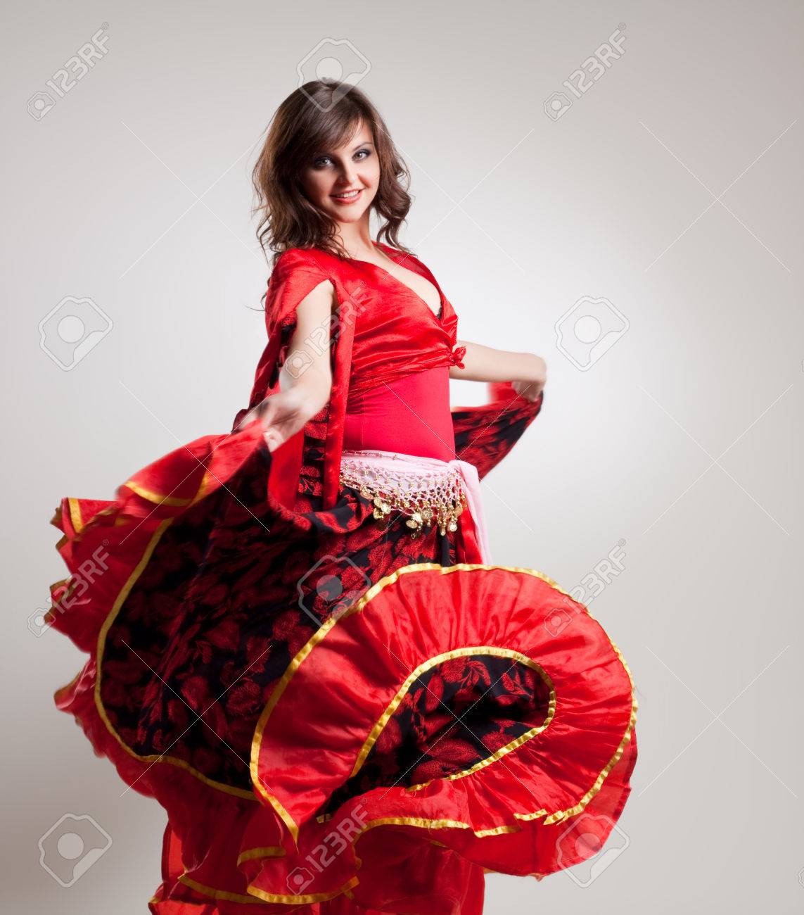 Mulher Danca Flamenca Da Espanha Em Traje Oriental Vermelho Fotos Do Acervo Freeimages Com