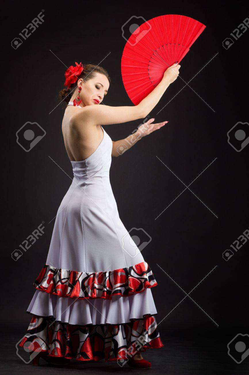 Flamenco Dancer In White Dress With Big Red Fan Stock Photo Picture And Royalty Free Image Image 21409274