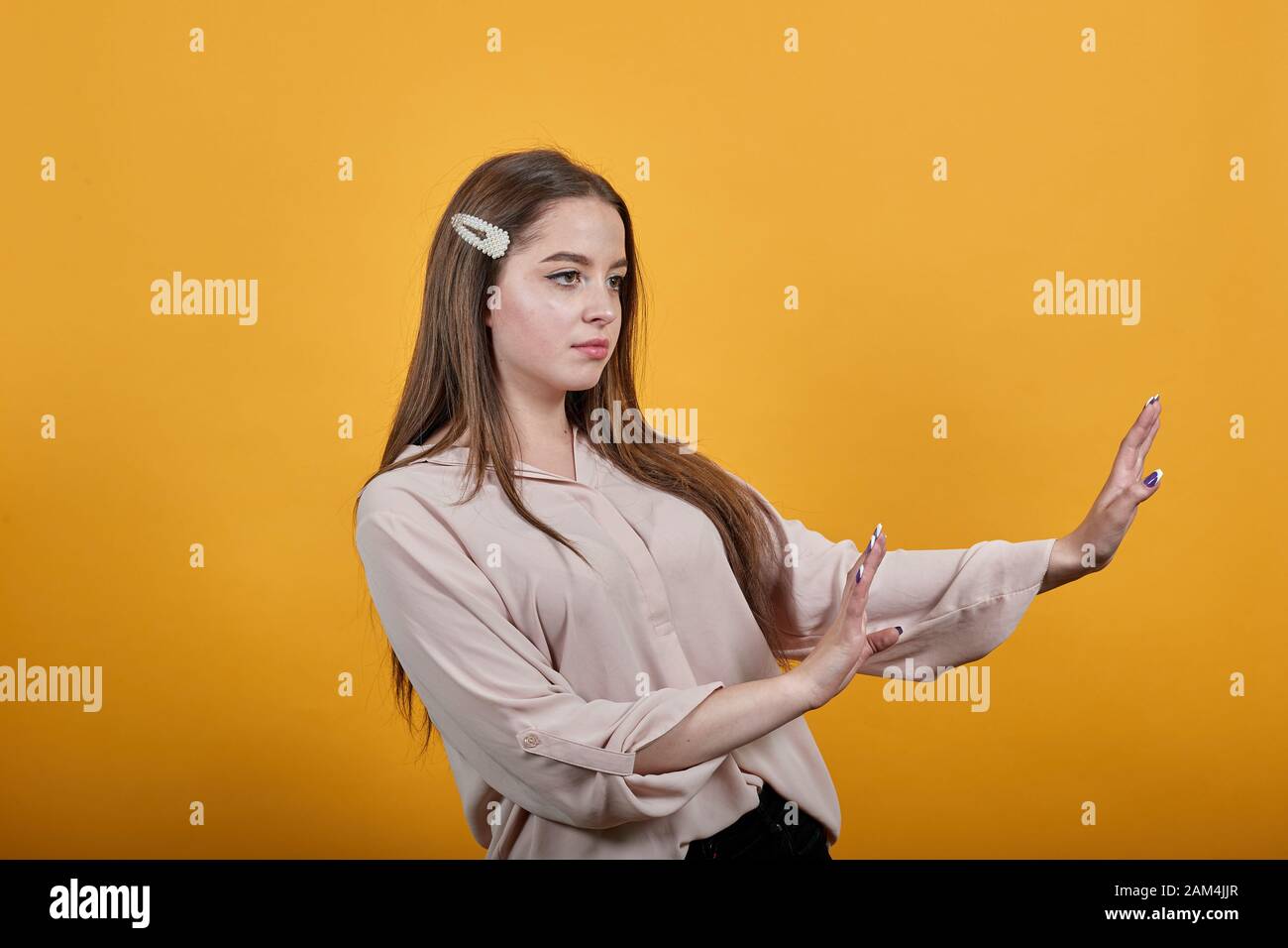 Mujer Decepcionada Posando Con Espacio De Copia Foto Premium